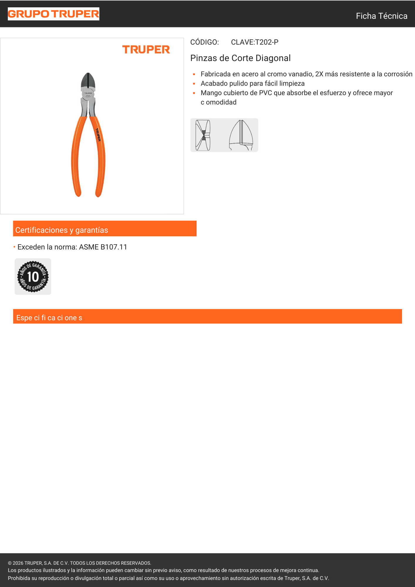 Alicate de corte Truper, fabricado en acero de alta resistencia, ideal para trabajos de corte precisos en instalaciones eléctricas y mantenimiento general. Cuenta con mangos ergonómicos que brindan un agarre firme y cómodo para un mejor control.