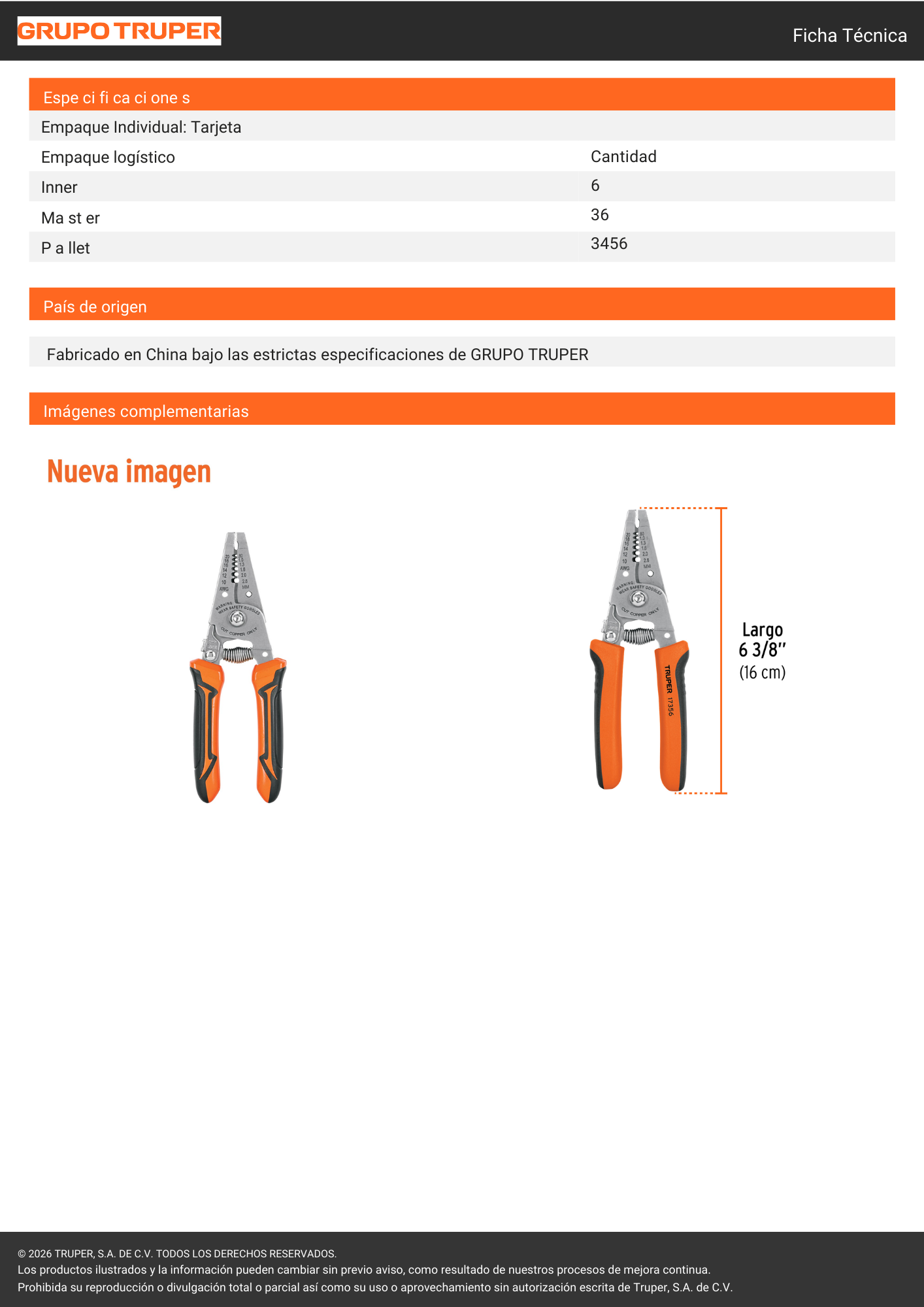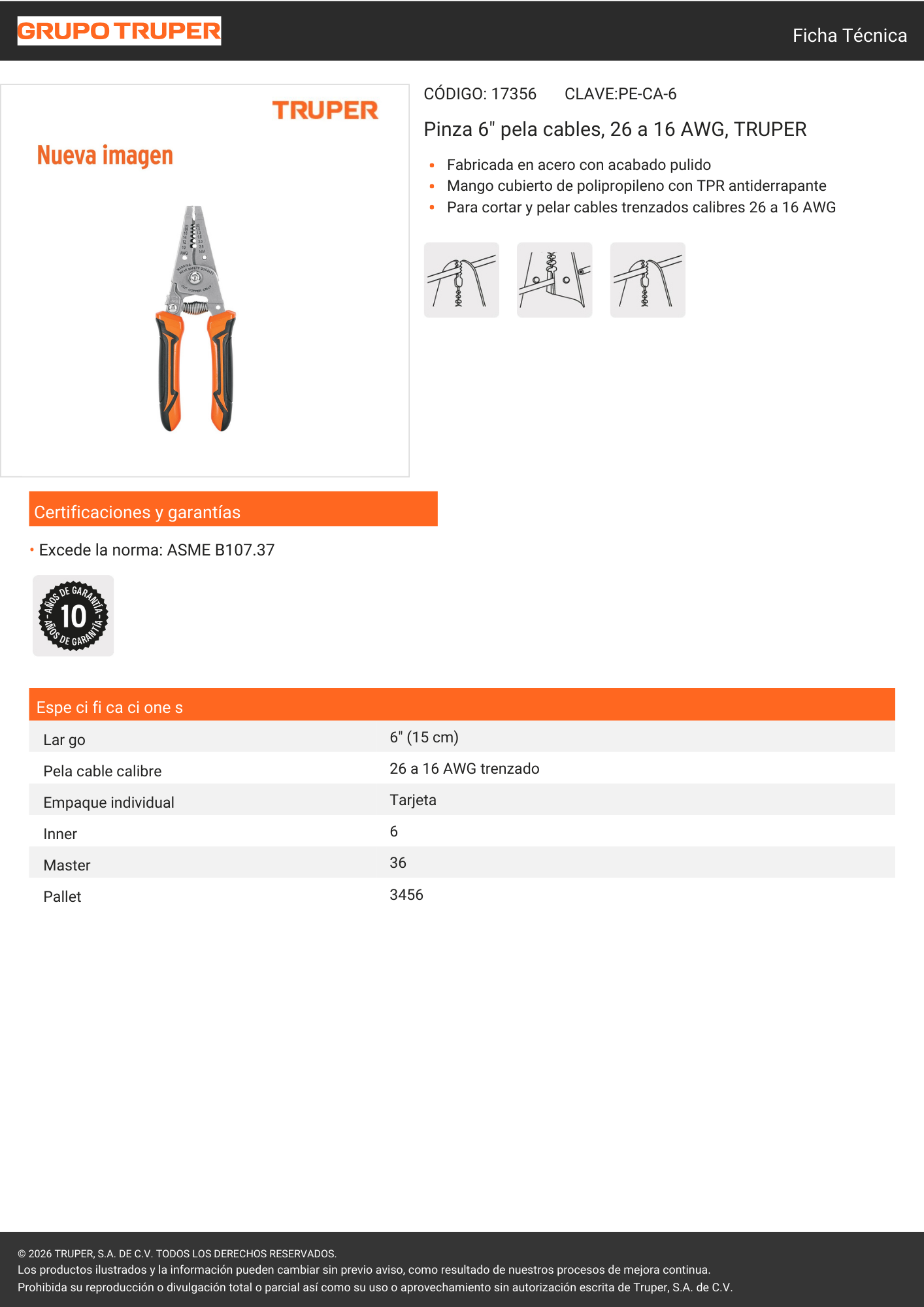 Alicate pela cable Truper de 6 pulgadas, ideal para retirar el aislamiento de cables de forma rápida y precisa. Fabricado en acero de alta resistencia y con mangos ergonómicos, ofrece un manejo cómodo y seguro para trabajos eléctricos y de mantenimiento.