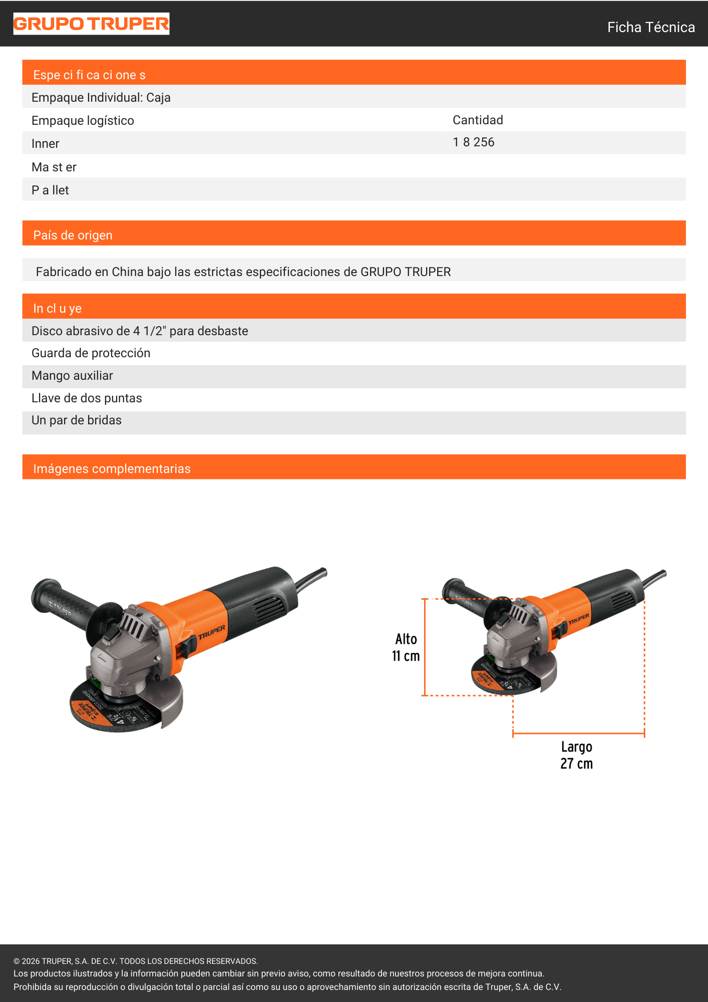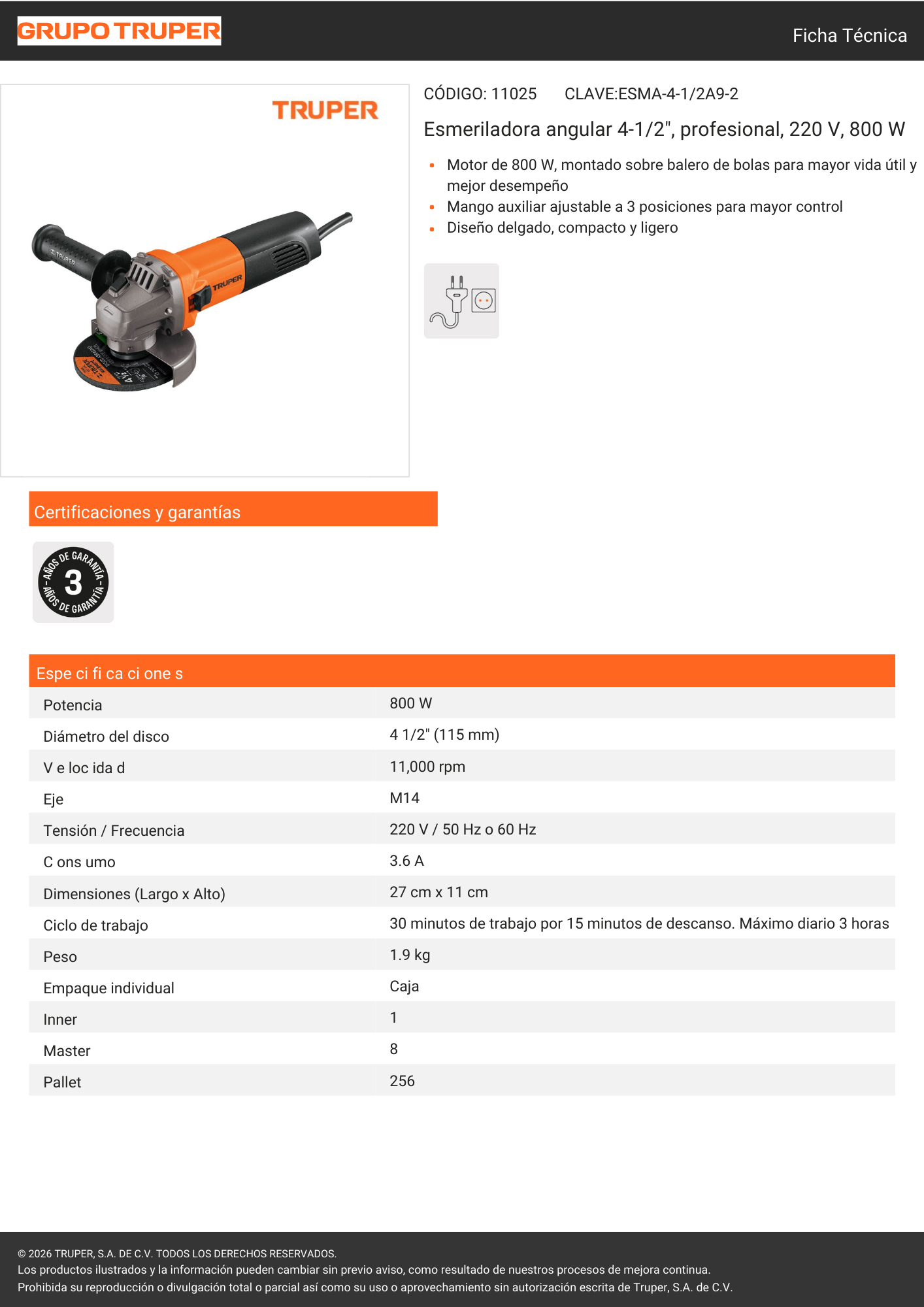 Amoladora 4.5 800w (11025) truper