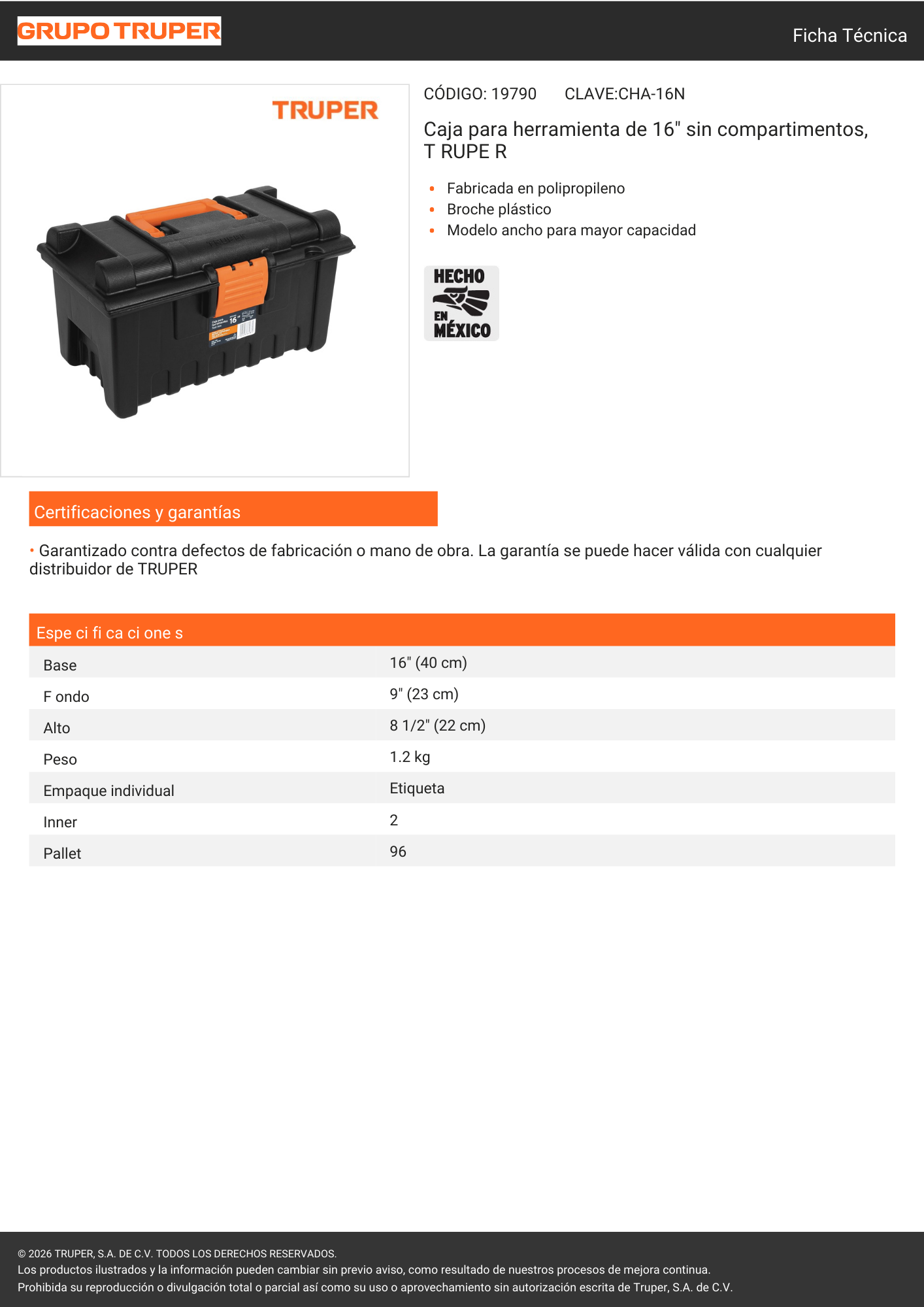 Caja herramienta 16'' (19790) truper