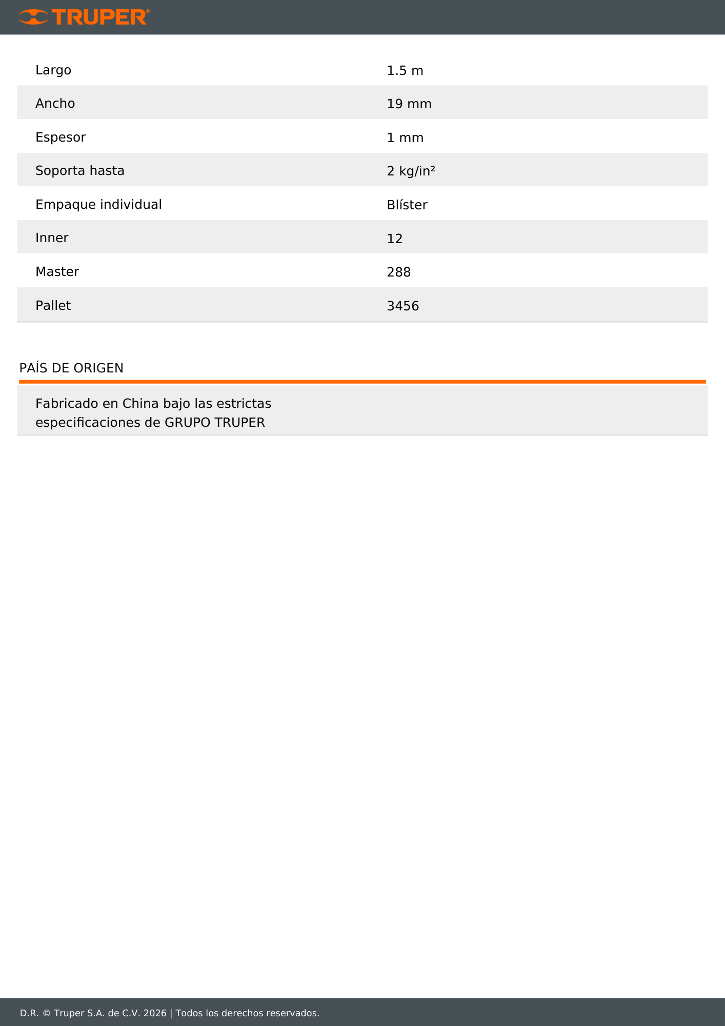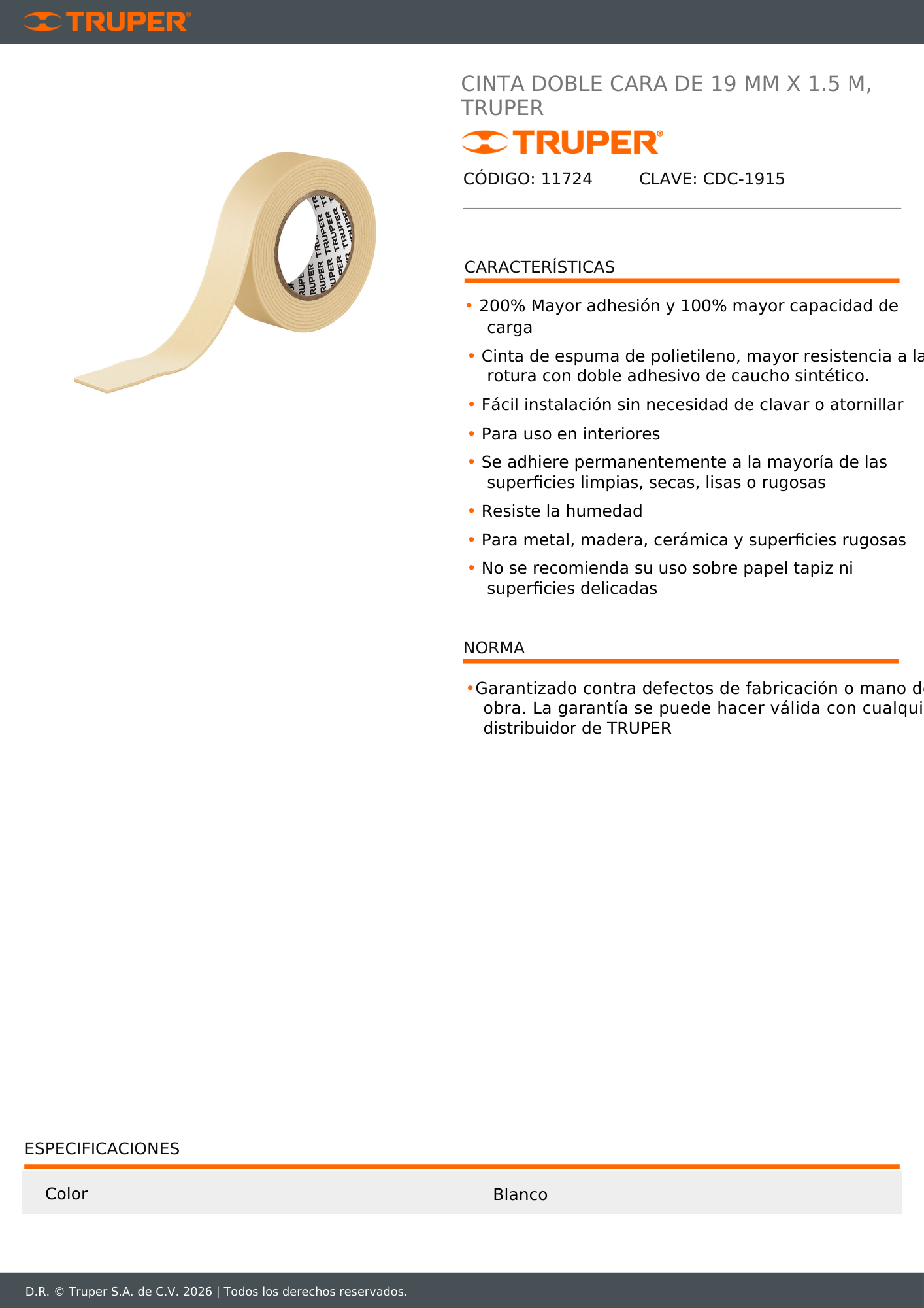 Cinta doble contacto 19mm x 1.5mts (11724) truper