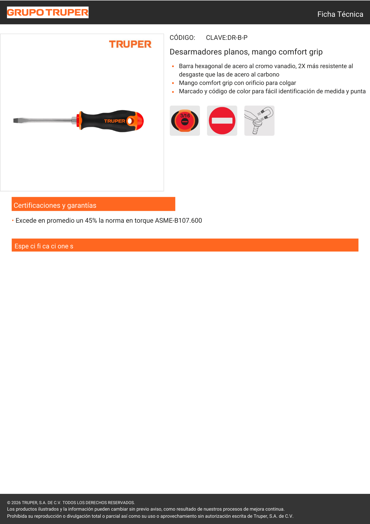Desarmador plano 1/4'' x 4'' (13998) truper