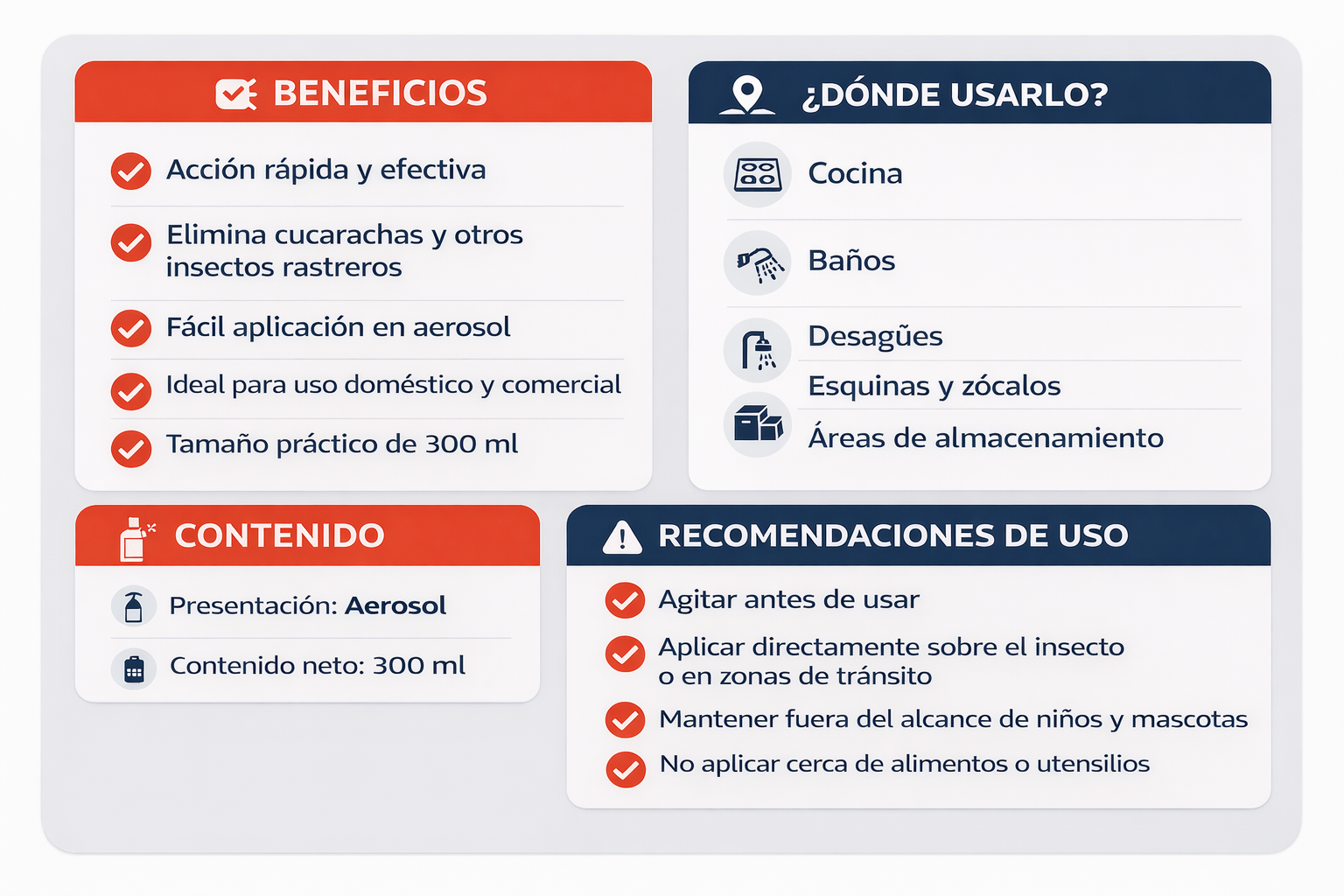 Elimina cucarachas y otros insectos rastreros de forma rápida y efectiva.