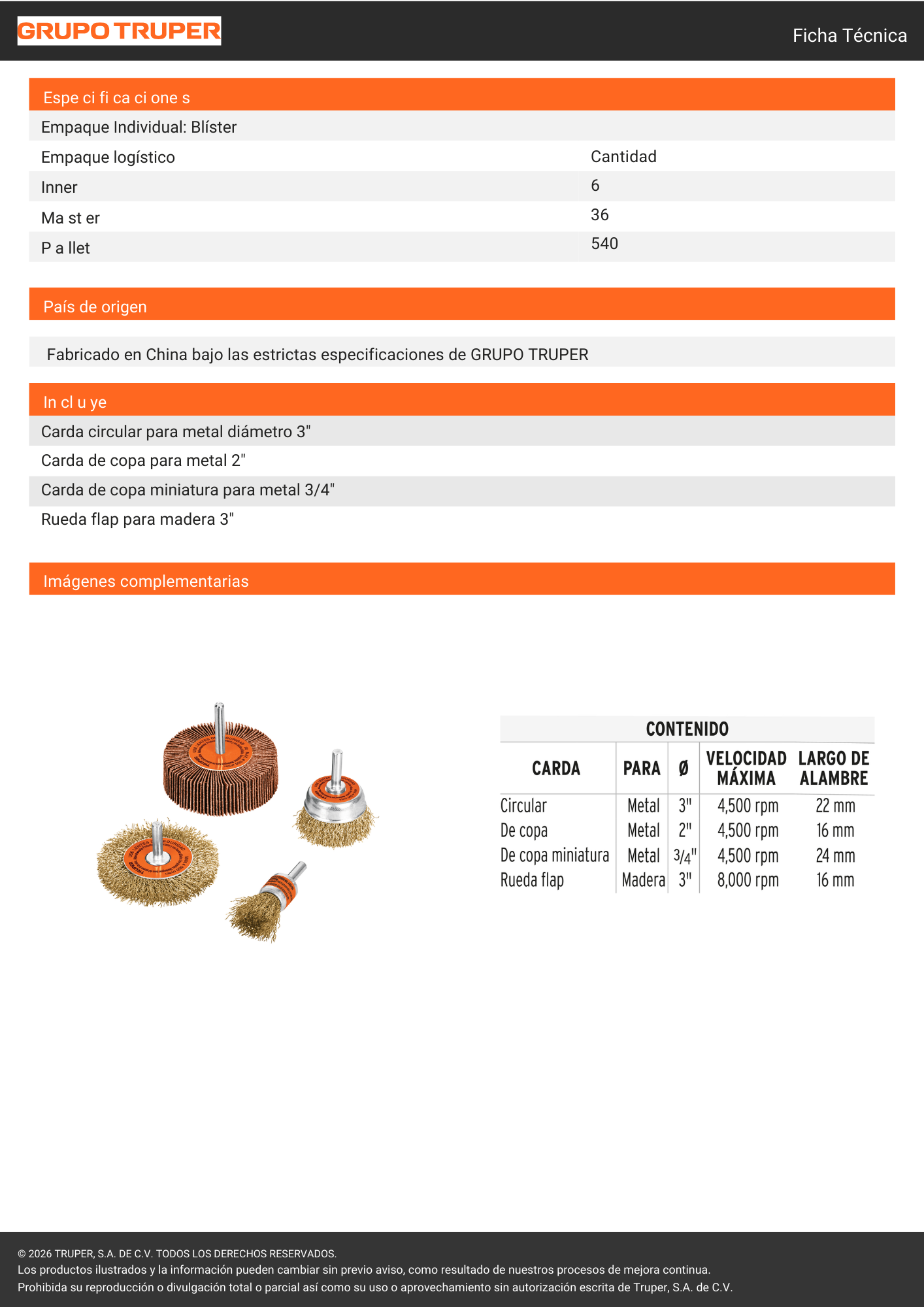 Juego de Escobillas para Taladro Truper de 4 unidades (modelo 11577), de uso profesional, ideal para limpieza profunda en azulejos, rines, tapicería y superficies metálicas. Fabricadas con cerdas de polipropileno de alta resistencia y zanco de cambio rápido, permiten remover suciedad difícil de forma rápida y eficiente, adaptándose a cualquier taladro estándar.
