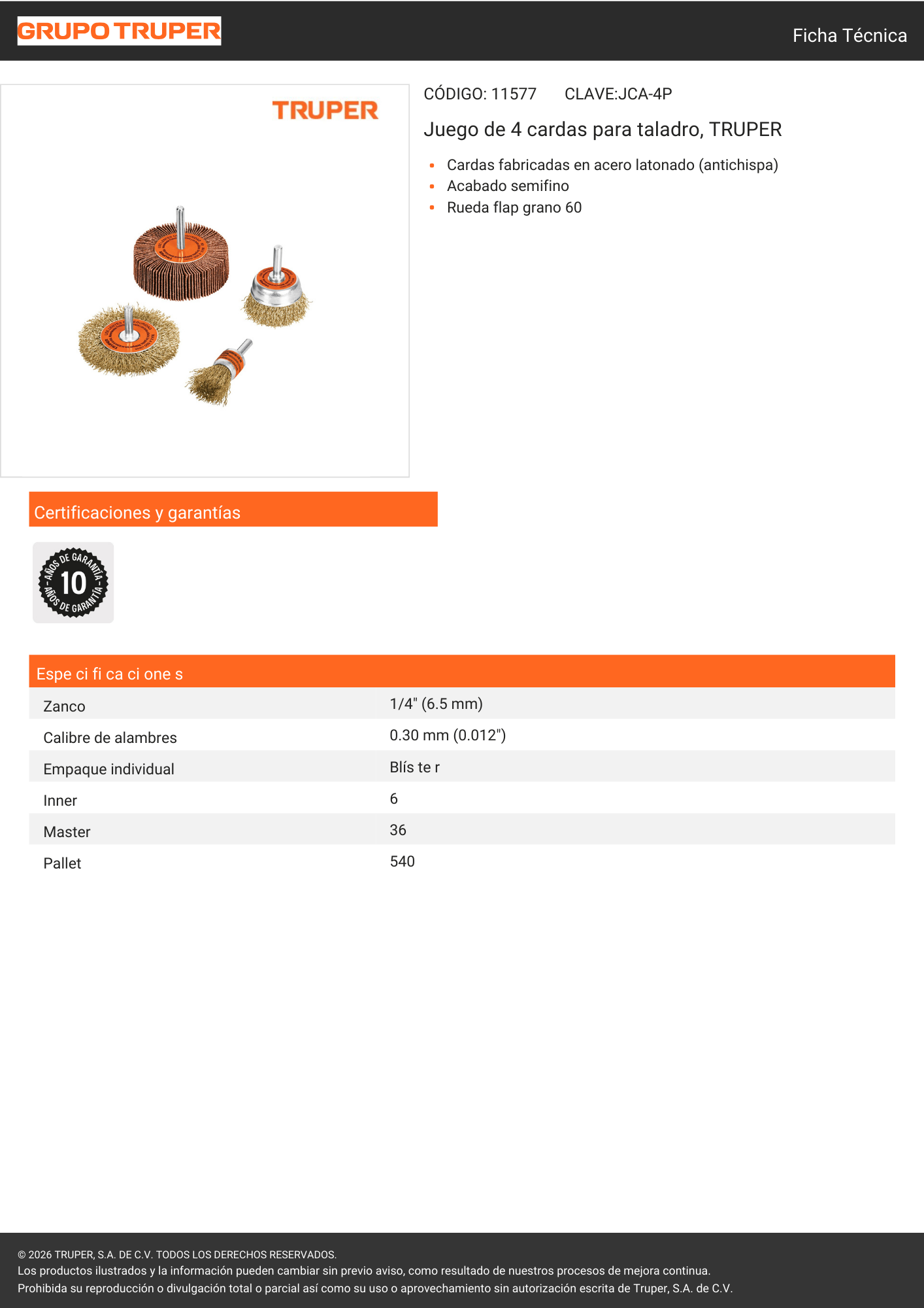 Jgo x 4unds escobilla p/taladro (11577) truper