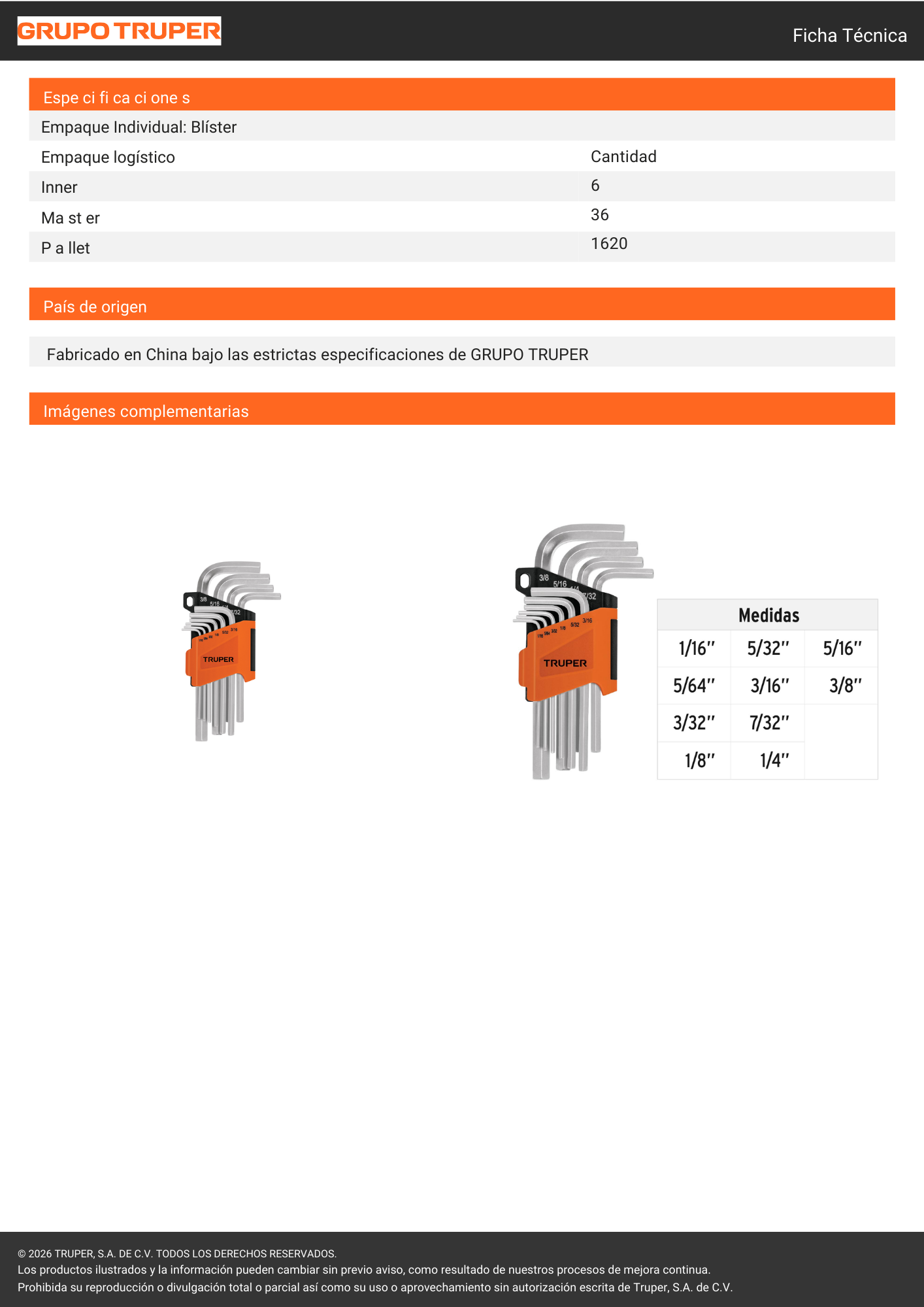 Juego de Llaves Allen Estándar Truper de 10 unidades (modelo 15539), de uso profesional, ideal para el ajuste y extracción de tornillos con entrada hexagonal en medidas fraccionales (pulgadas). Fabricadas en acero al cromo vanadio, estas llaves ofrecen una excelente resistencia a la torsión y una larga vida útil. El set incluye las medidas estándar más utilizadas, organizadas en un práctico estuche plástico que facilita el transporte y evita la pérdida de las piezas durante el trabajo.