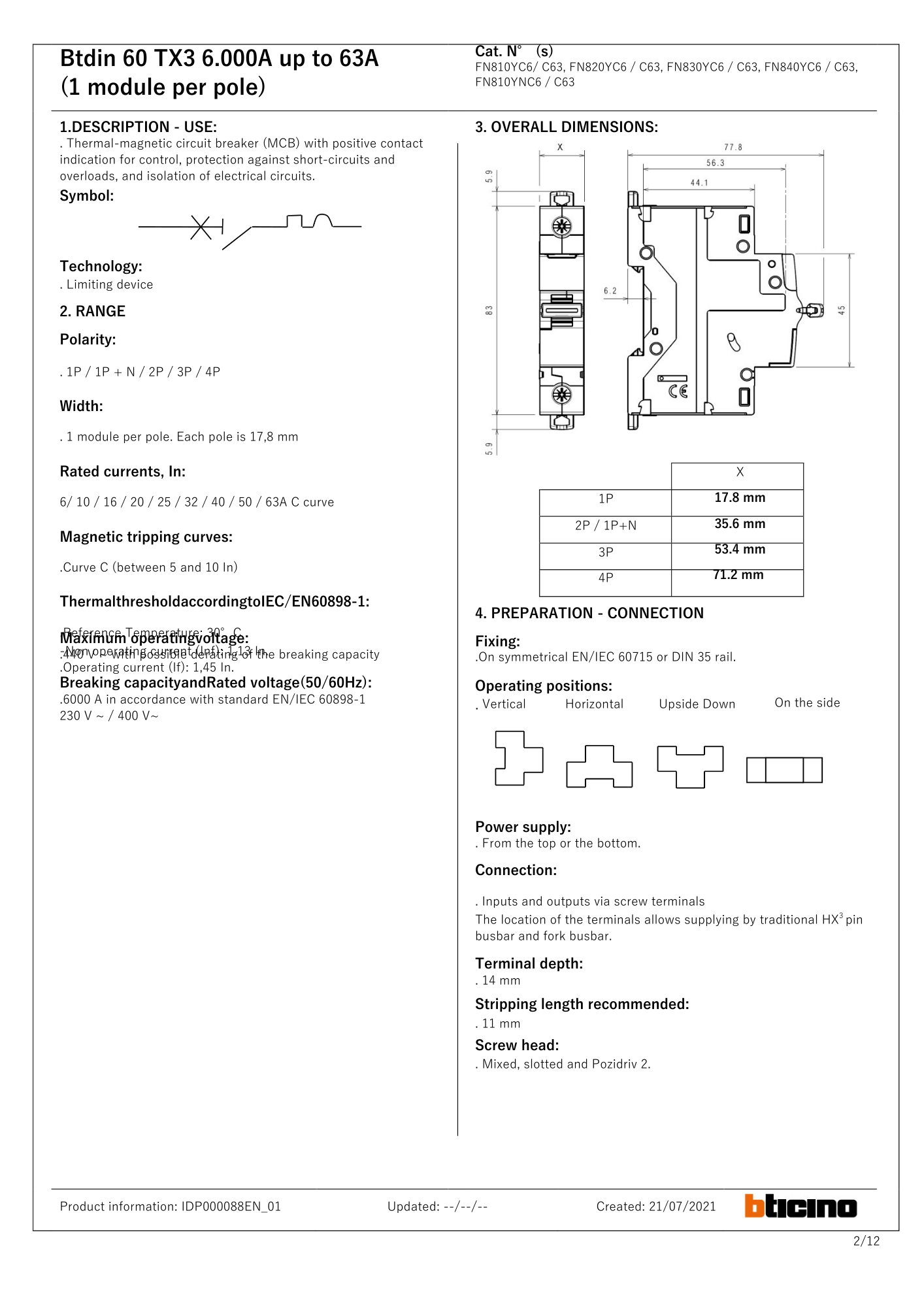 La Llave Térmica Monofásica de 2 x 60A de la marca Bticino es un interruptor termomagnético de alto rendimiento diseñado para montaje en Riel DIN, que ofrece una protección superior contra sobrecargas y cortocircuitos en instalaciones eléctricas de gran demanda. Con una capacidad de 60 Amperios, esta llave es la solución ideal para actuar como interruptor general en tableros domésticos de gran tamaño o para alimentar equipos de alto consumo como sistemas de aire acondicionado centralizados, termas de paso industriales o cocinas eléctricas de gran vataje, requiriendo siempre un cableado de calibre 4 AWG o 6 AWG (según la normativa vigente) para garantizar que la infraestructura soporte la carga con total seguridad.