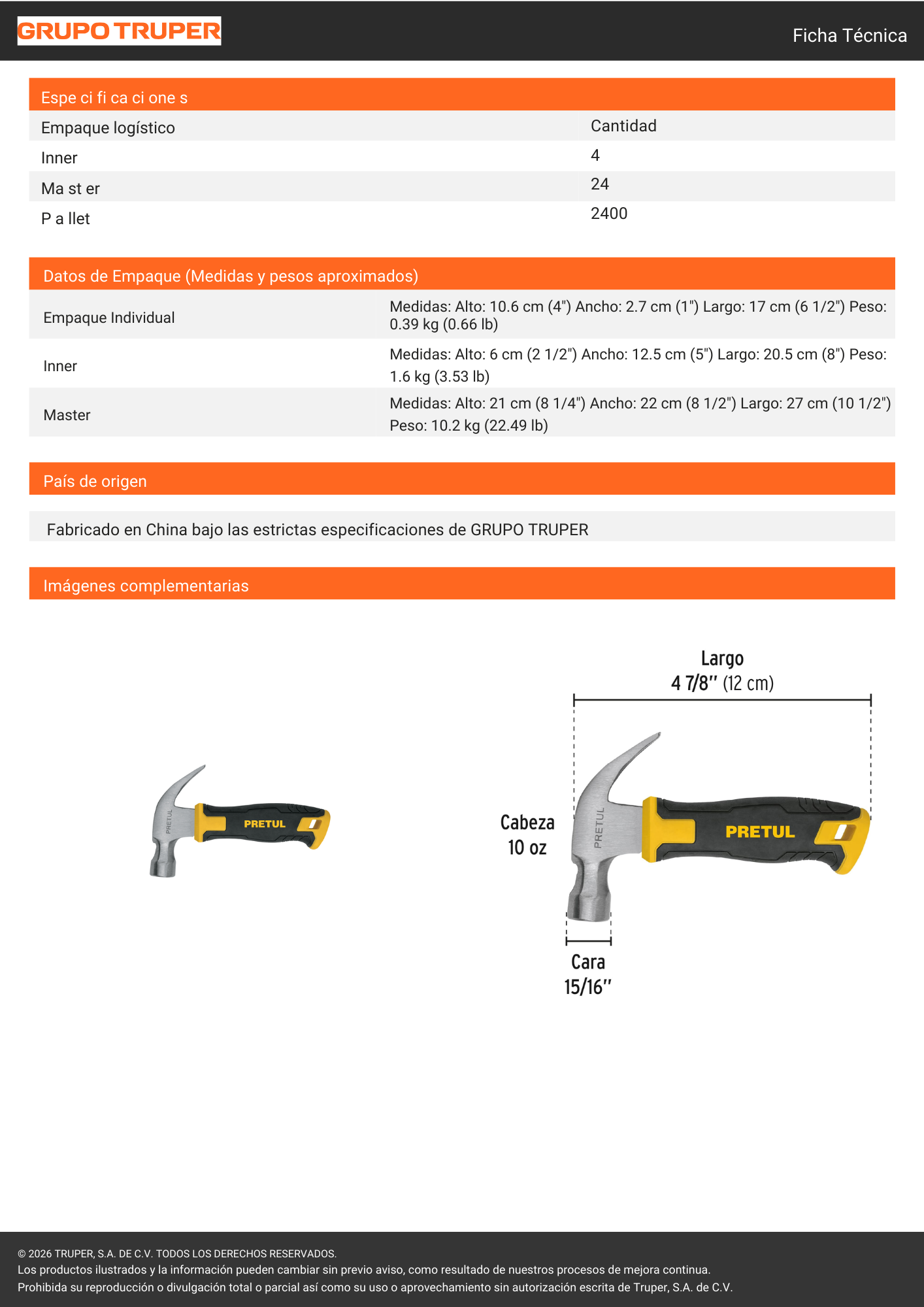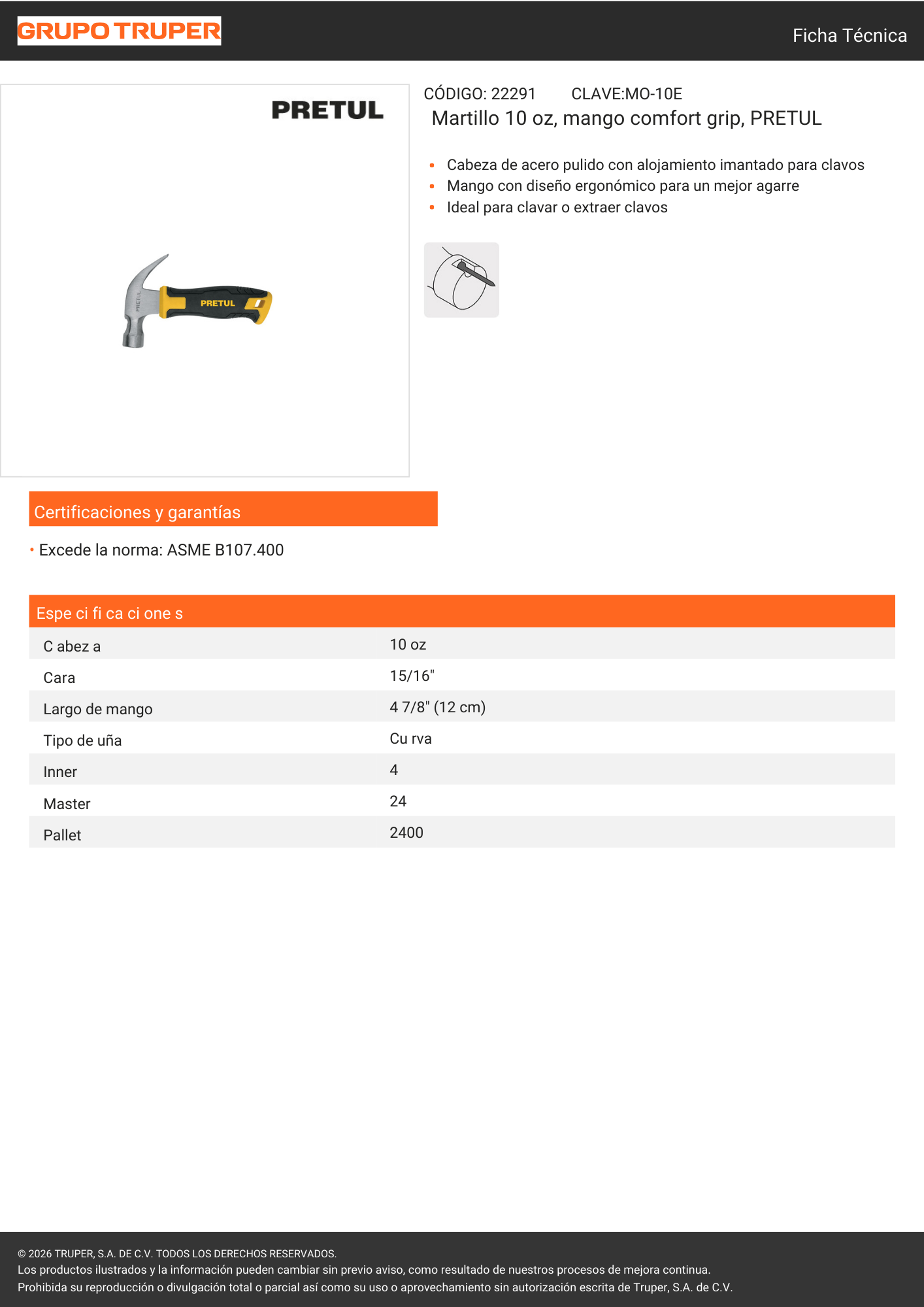 Martillo chico 10 oz (22291) pretul