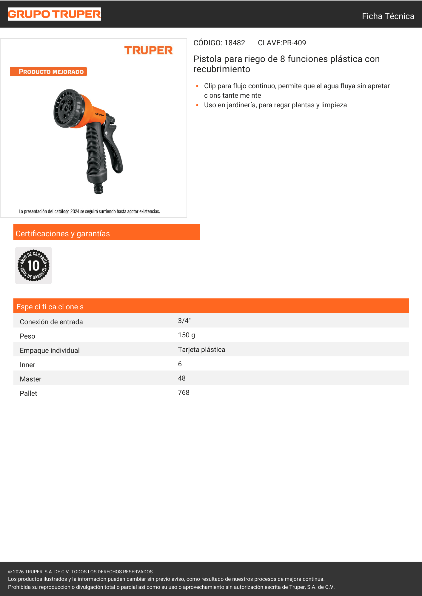 La Regadera de 8 funciones (modelo 18482) de la marca Truper es una cabeza de ducha versátil fabricada en ABS de alta resistencia con acabado cromado. Su sistema permite girar el cabezal para elegir entre 8 tipos de chorro diferentes (desde masaje hasta lluvia fina), adaptándose a tus preferencias de presión y confort. Además, cuenta con boquillas de fácil limpieza que evitan la acumulación de sarro.